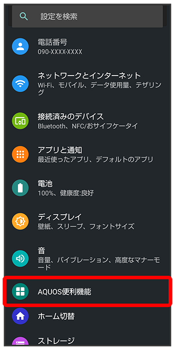 AQUOS便利機能画面が表示されます。