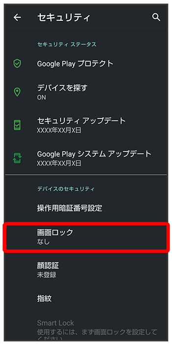 - 変更前の画面ロック解除方法がまたは以外のときは、ロックを解除する操作が必要です。