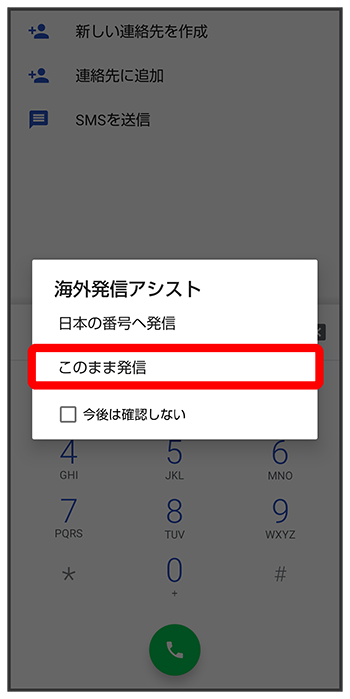 ダイヤルキーをタップして相手の電話番号を入力- 電話番号の先頭には「+」を付けないでください。