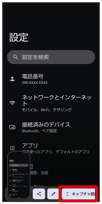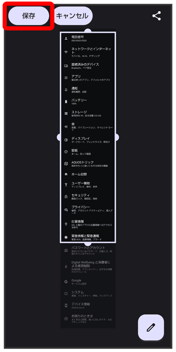 をタップすると指定した範囲のスクリーンショットが別のファイルとして保存され、共有や編集ができます。