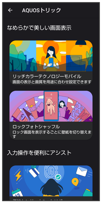 | AQUOS Home | 項目が追加され、AQUOS Homeの設定ができます。 |