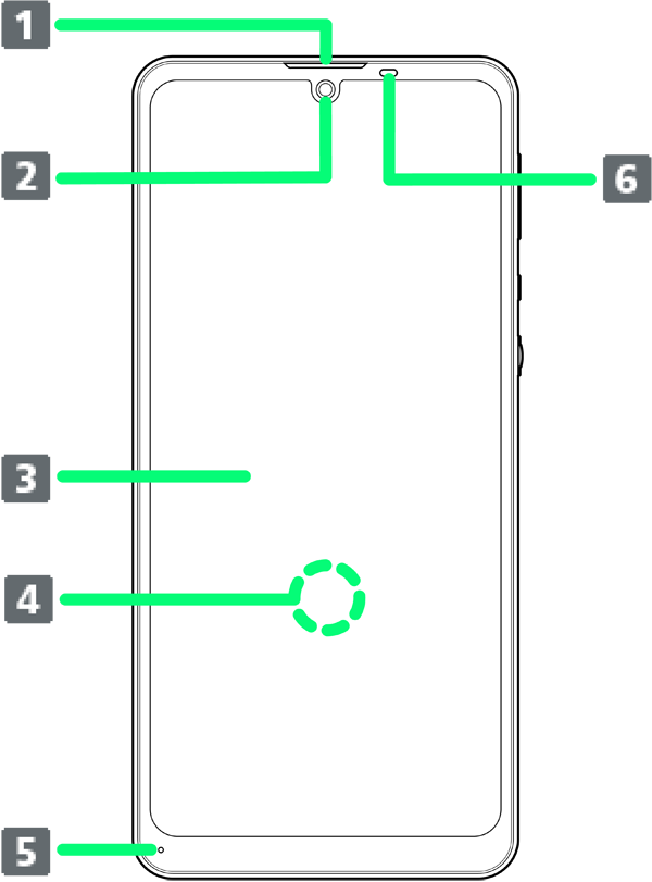| 近接/明るさセンサー1 | 近接センサーは通話中にタッチパネルの誤動作を防ぎます。明るさセンサーは周囲の明るさに合わせて、ディスプレイの明るさを調節します。 |