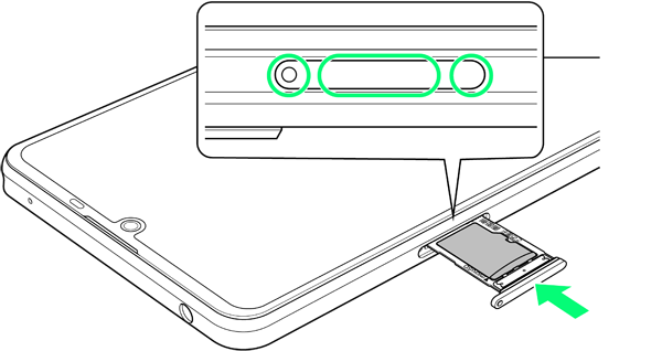 SIM/SDカード挿入口に、カードトレイを差し込む