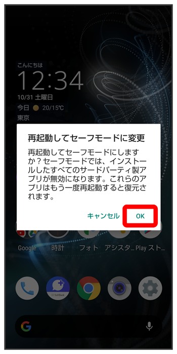 - セーフモードで電源を入れると、追加していたウィジェットが削除されることがあります。