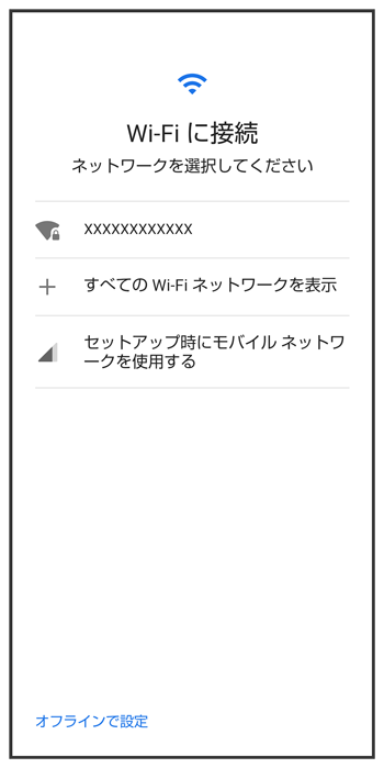 - Wi-Fiの設定を行わないときは、/を選択します。以降は、画面に従って操作してください。