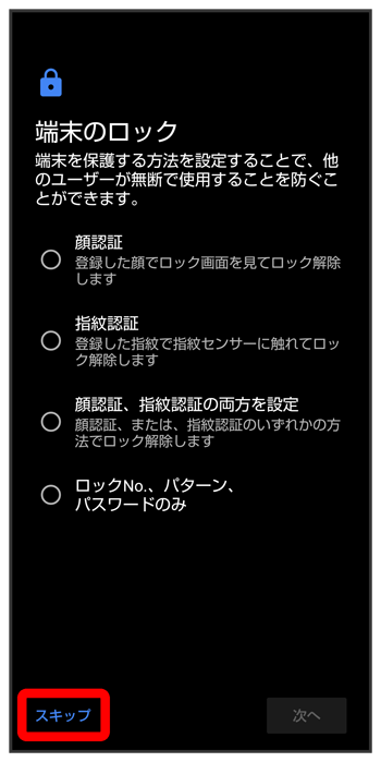 - Google アカウントを設定しないときは、と操作します。