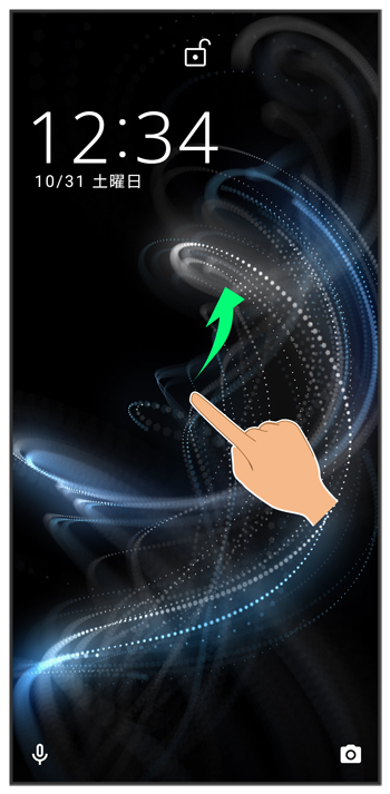 ロック画面を上にフリック