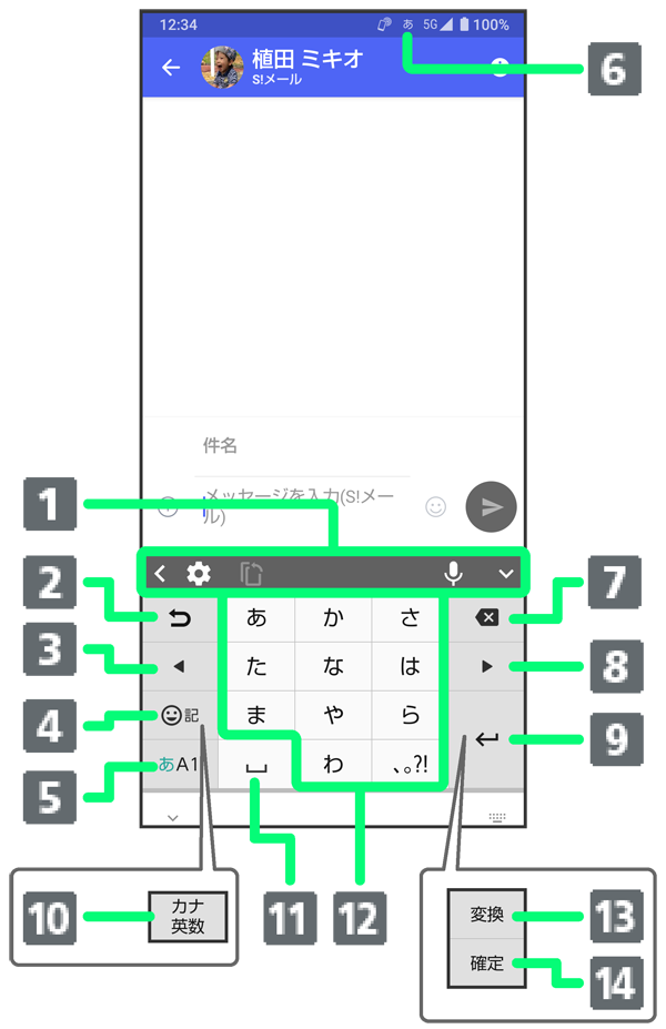 - 絵文字/記号/顔文字を入力(ロングタッチすると、入力拡張プラグインを表示)