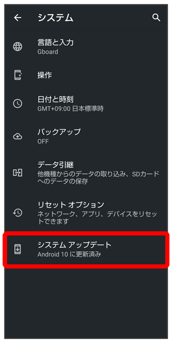 システムアップデートが必要なときは、通知が表示されます。通知をタップし、画面に従って操作してください。通知が表示されない場合などは、次の手順で必要かどうかを確認してアップデートできます。