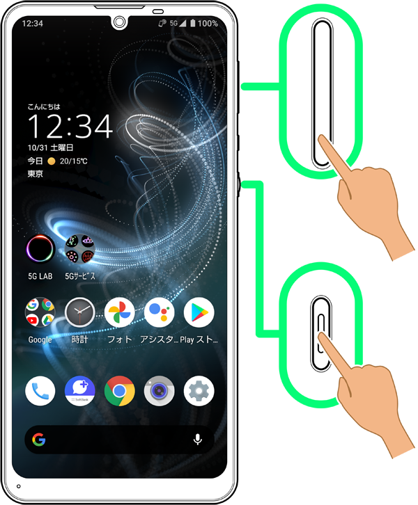 電源キーを長押しと操作しても、スクリーンショットを撮ることができます。