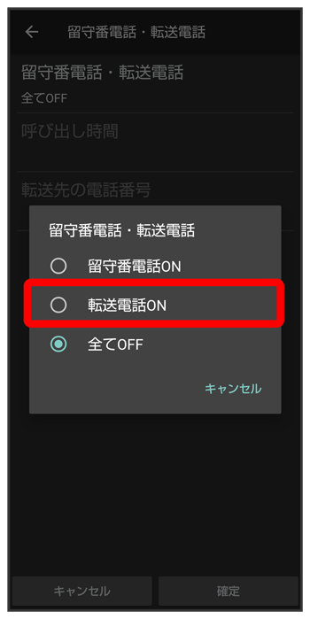 留守番電話・転送電話画面で