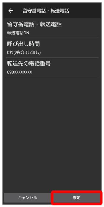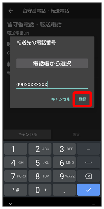電話番号入力欄をタップ転送先の電話番号を入力