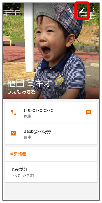 連絡先編集画面で登録する種別の- 「カスタム」を選択したときは、このあと種別名を入力と操作してください。