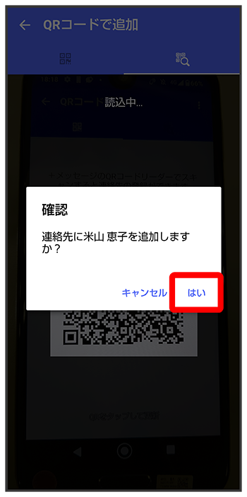 - をタップすると、電話帳アプリが開き、連絡先を作成することができます。