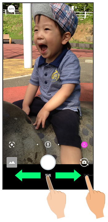 - 写真撮影画面の操作について詳しくは、「写真撮影画面(アウトカメラ)の見かた」、「写真撮影画面(インカメラ)の見かた」を参照してください。