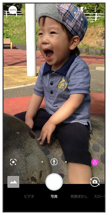 - 画面下部の撮影モードを左右にドラッグしてを選択すると、近くの被写体にピントを合わせ、背景をぼかした写真を撮ることができます。