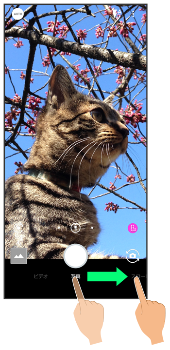 - 画面下部の撮影モードを左右にドラッグしてを選択すると、通常よりも動きが滑らかな動画を撮ることができます。詳しくは、「スロービデオモードで撮る」を参照してください。