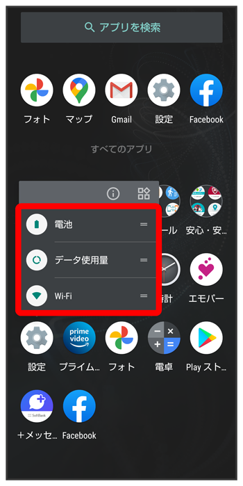 アプリをロングタッチすると、アプリにより機能へのショートカットが表示される場合があります。機能ショートカットをタップすると、その機能を直接起動できます。