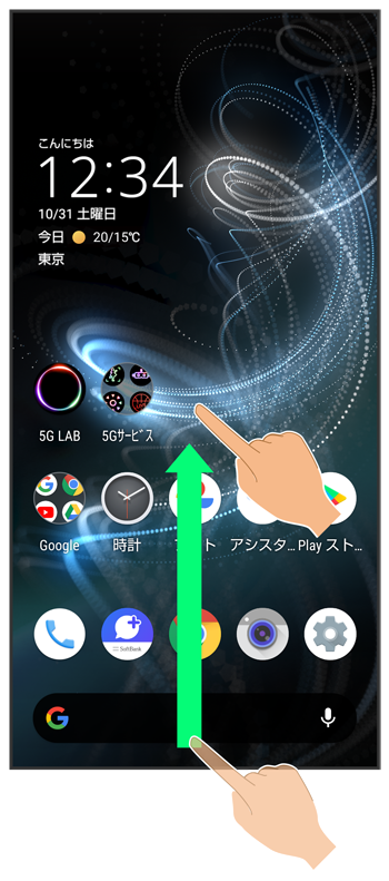 - ホーム画面では、画面のどの部分を上にドラッグしても、アプリの使用履歴画面が表示されます。