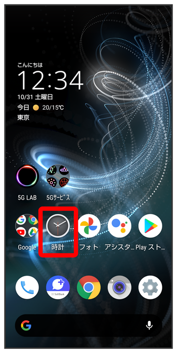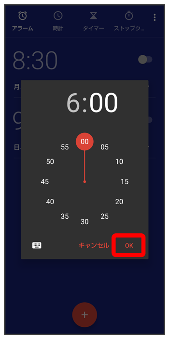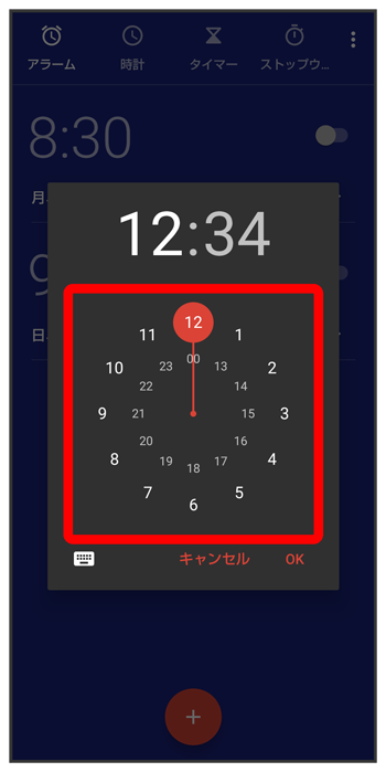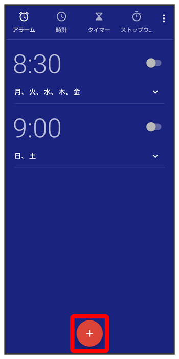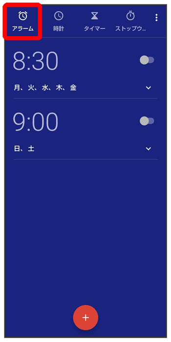 アラーム設定時刻になると、アラーム通知の画面が表示され、アラームやバイブレータでお知らせします。