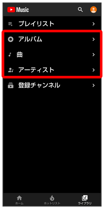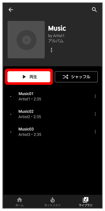 項目をタップ/再生する曲をタップ