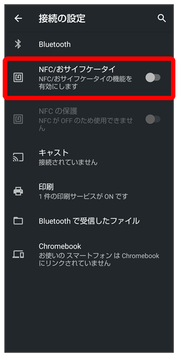 画面消灯(画面ロック)中はNFC/おサイフケータイ®の機能を無効にする