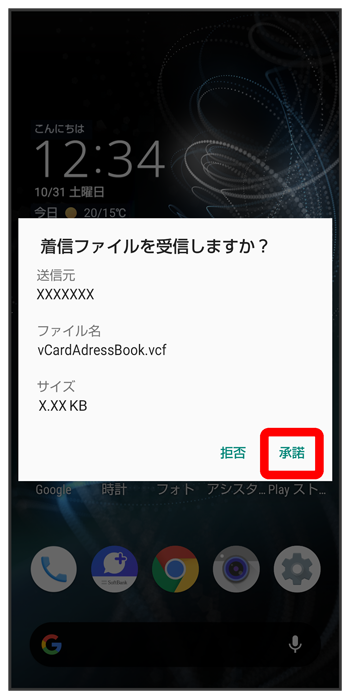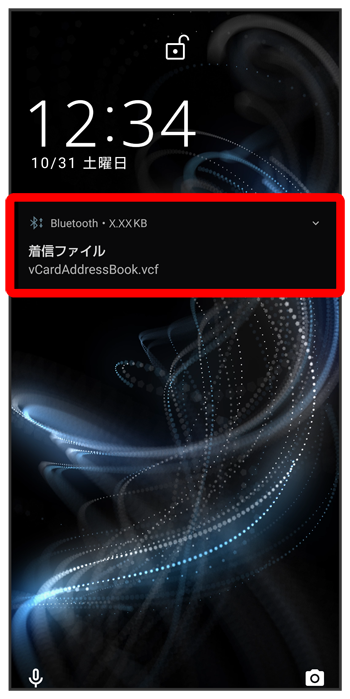 相手からデータの受信要求があると、ロック画面に通知が表示されます。次の操作を行うと、受信することができます。