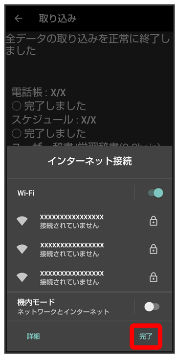 - あらかじめ、バックアップデータを保存したSDカードを取り付けてください。詳しくは、「SDカードを取り付ける」を参照してください。