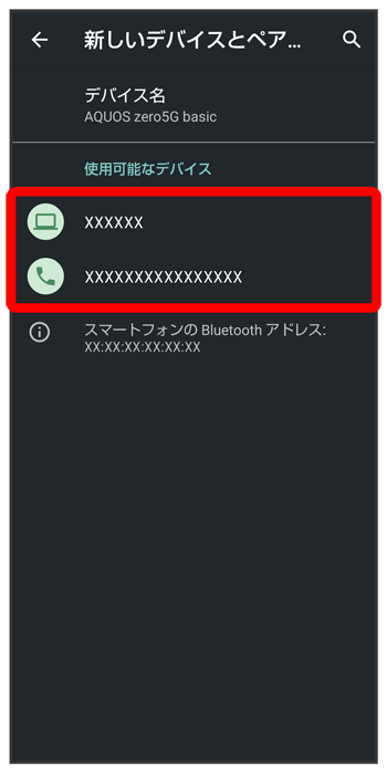 「使用可能なデバイス」欄に近くにあるBluetooth®機器が表示されます。