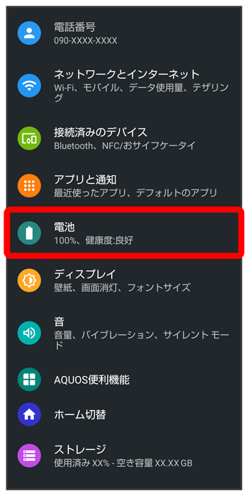 電池画面が表示されます。