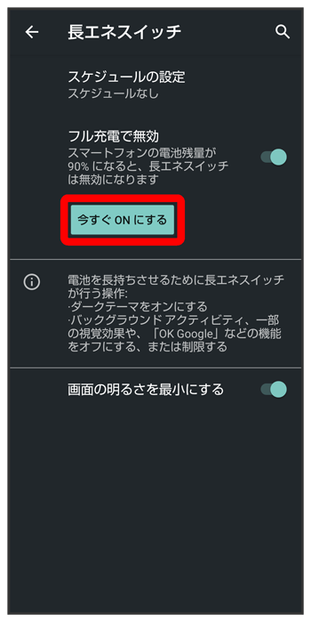 画面の明るさを最小にするかどうかを設定する