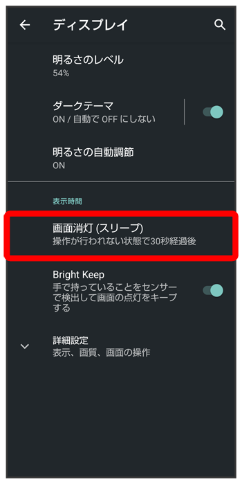 ディスプレイ消灯までの時間を設定する