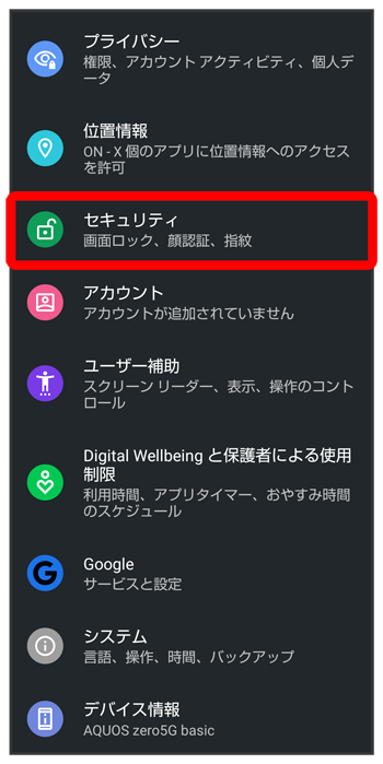- 画面ロック解除方法の設定について詳しくは、「パターンを指でなぞって画面ロックを解除するように設定する」、「ロックNo.(PIN)で画面ロックを解除するように設定する」、「パスワードで画面ロックを解除するように設定する」を参照してください。