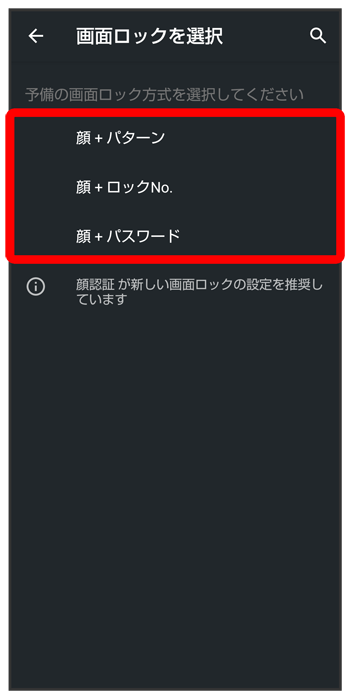 - 顔認証ができないときの予備の画面ロック解除方法になります。