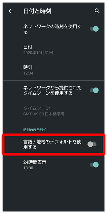 ユーザーの言語/地域の標準に従って24時間表示/12時間表示が自動設定されます。