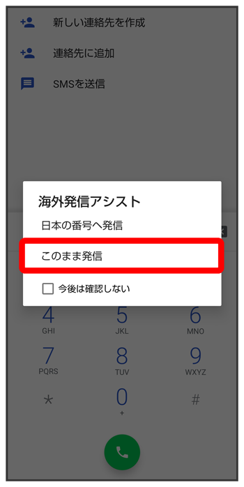 ダイヤルキーをタップして相手の電話番号を入力- 電話番号の先頭には「+」を付けないでください。