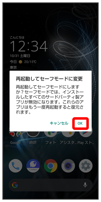 - セーフモード中は、機内モードに設定されます。セーフモードを解除しても、機内モードの設定が維持されますのでご注意ください。