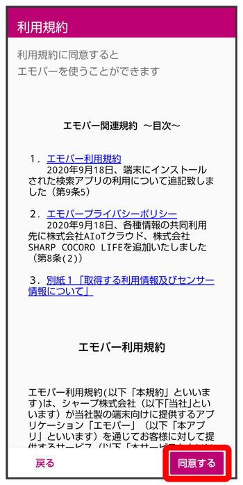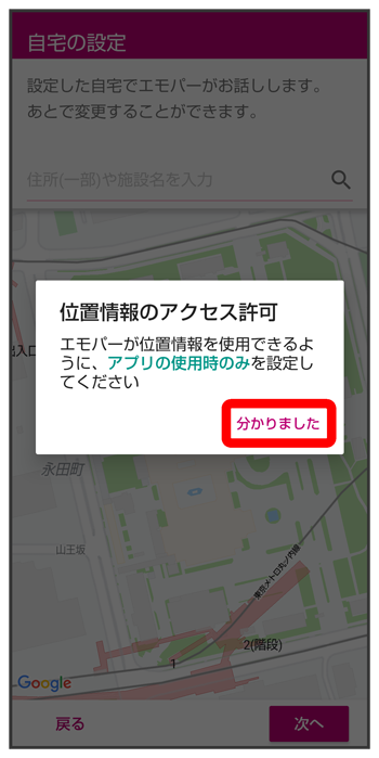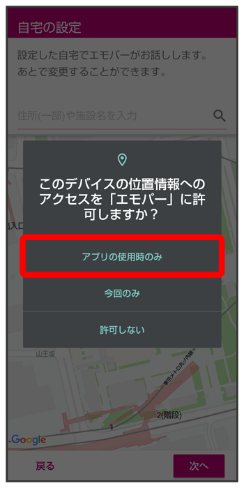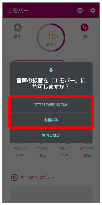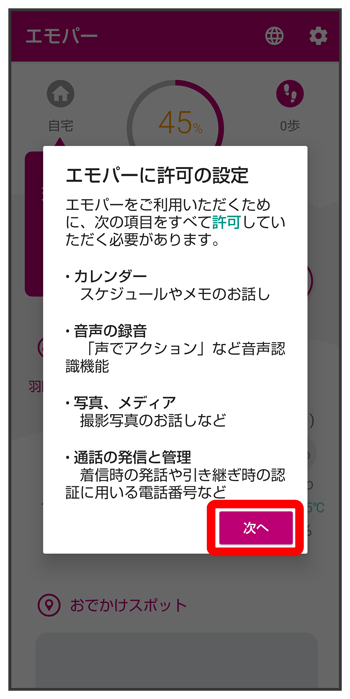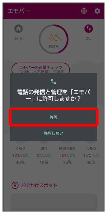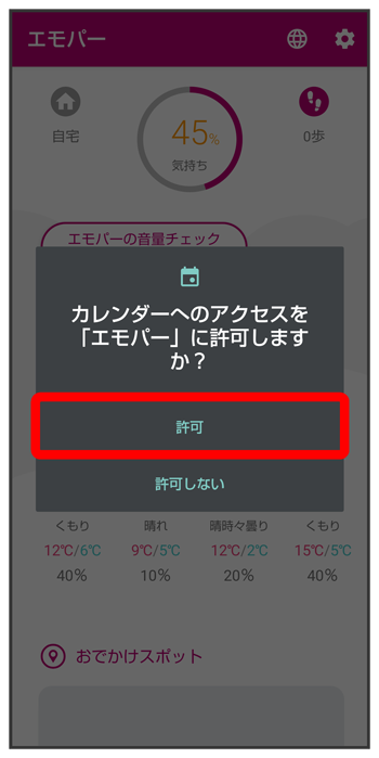 エモパーに許可の設定画面が表示されたら
