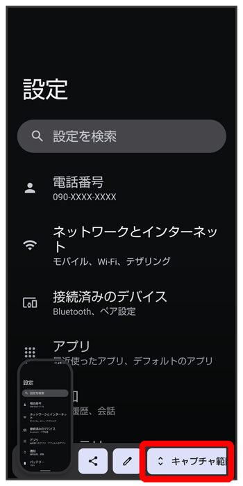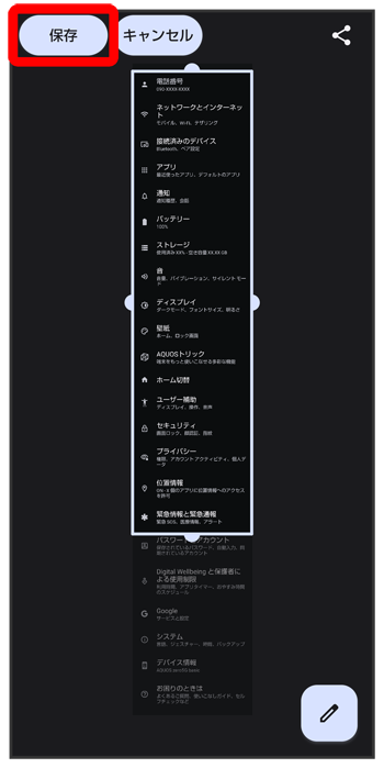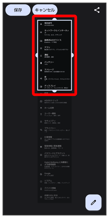をタップすると指定した範囲のスクリーンショットが別のファイルとして保存され、共有や編集ができます。