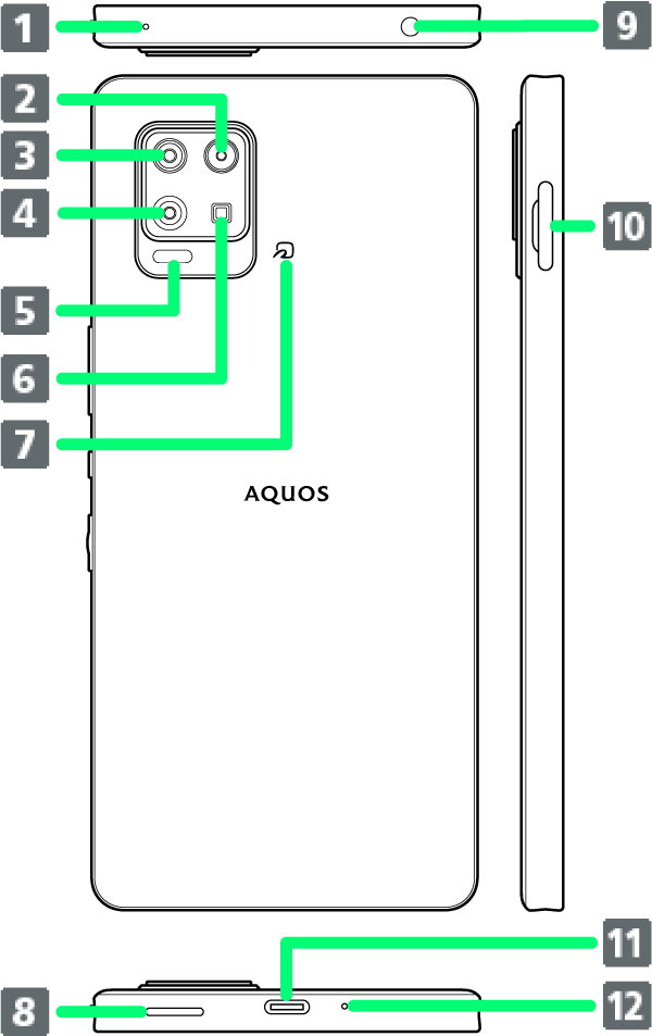 | カードトレイ | SDカードやSIMカードを取り付け/取り外しできます。 |