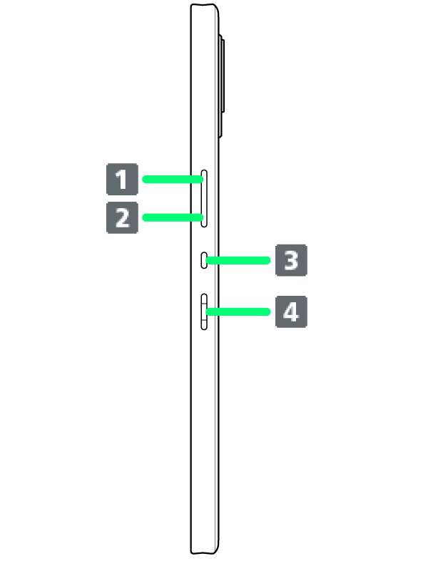 | 電源キー | 画面を消灯/点灯します。長押しすると、電源をON/OFFまたは再起動したり、設定したアプリを起動できます。2 |