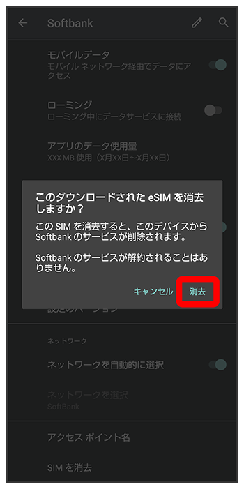 eSIMが消去されます。