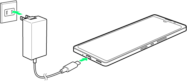 ACアダプタは、防水対応していません。本機または充電器が濡れている状態では、USB Type-Cプラグを絶対に接続しないでください。