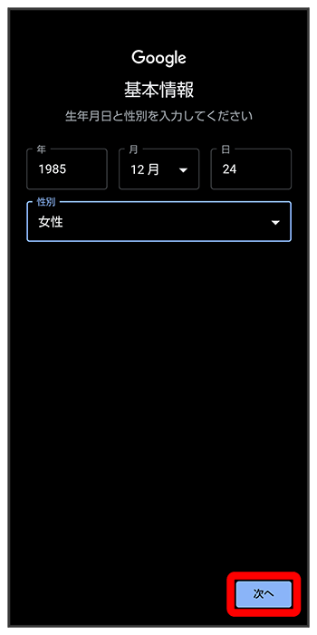 生年月日と性別を設定/入力