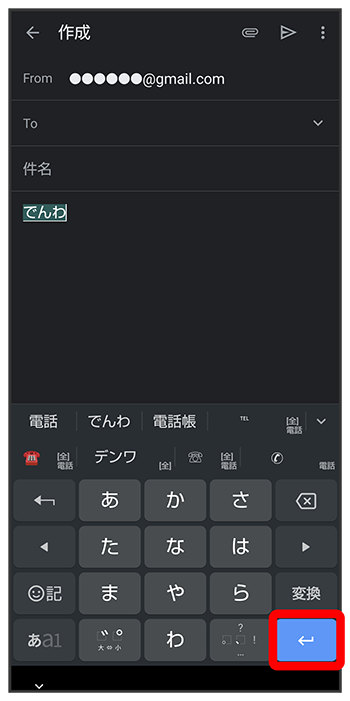 をタップしたあと、次の文字を入力します。入力した文字の背景色が変わったあとは、そのまま次の文字が入力できます。 - キーをくり返しタップせず、キーをロングタッチしたときに表示されるキー入力ガイドを利用して文字を入力することもできます。詳しくは、「フリック入力について」を参照してください。