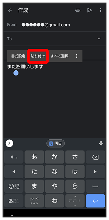 貼り付ける文字をタップしても、貼り付けできます。あらかじめクリップボードを有効にしてください。アプリによっては、利用できないことがあります。