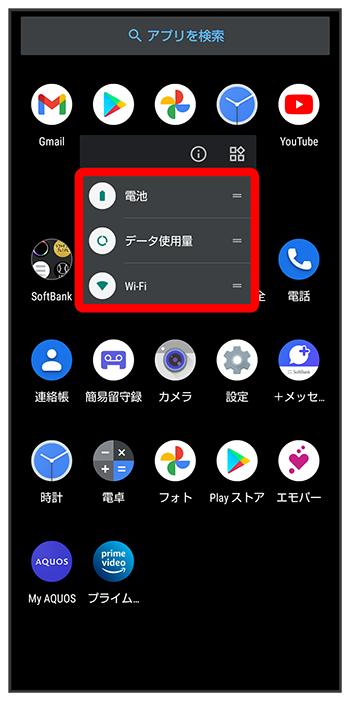 アプリをロングタッチすると、アプリにより機能へのショートカットが表示される場合があります。機能ショートカットをロングタッチし、ホーム画面の追加したい位置で指を離すと、機能へのショートカットとして追加することができます。