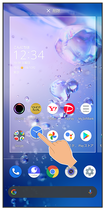 ホーム画面でフォルダをロングタッチ「削除」までドラッグ- お気に入りトレイでも同様に操作できます。
