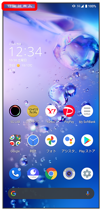 ステータスバーの左側に表示されるアイコンには、次のようなものがあります。