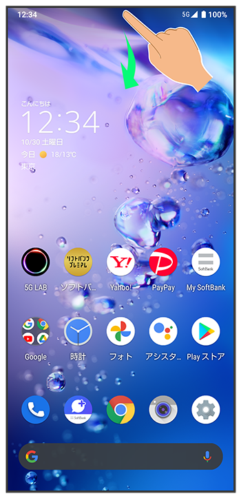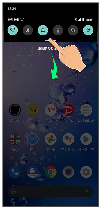 - 通知パネルが開いてない状態で、ステータスバーを2本の指で下にフリックしても、クイック設定パネルが表示されます。